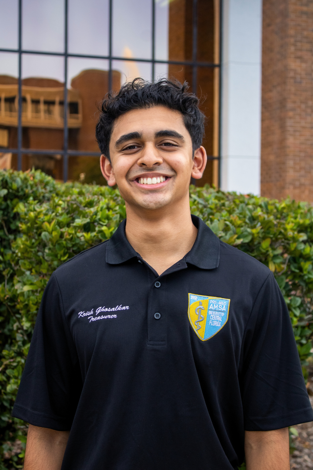 Krish Ghosalkar joined AMSA in his freshman year as a clinical experiences director and advanced to a presidential director his sophomore year. Krish is involved with research in microbial genomics and various forms of community service. In his free time, he enjoys hanging out with friends and reading.