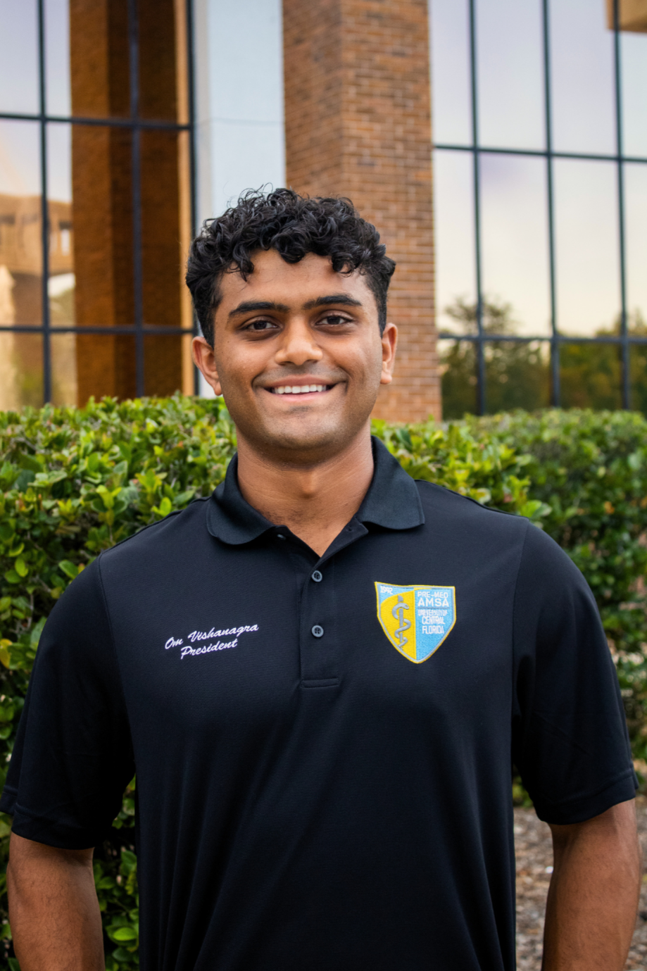 Om Vishanagra is pursuing a dual major in Mechanical Engineering and Biomedical Sciences, set to graduate in 2027. He began his journey with AMSA as a freshman marketing director and advanced to a presidential director in his sophomore year. Om is passionate about bridging the gap between Engineering and Medicine, which is evident in his research at Limbitless Solutions. In his free time, he enjoys playing golf, hanging out with friends, and flying drones.